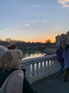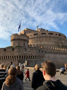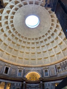 Hello from the Structures of Engineering J-Term class of 2019! Today we finally touched down in the place we’ve been studying and preparing for, Italy! So far, we have been able to push through the jet lag and begin immersing ourselves in the Italian Culture. First we started walking towards the Castle then we traveled to the Pantheon which was a beautiful representation of the religious history of Rome. All throughout the temple are giant statues depicting Jesus throughout his life as well as beautiful paintings lining the walls. It is one of the oldest standing buildings here in Rome. One really cool aspect of the Pantheon besides all the Catholic altars is the gaping hole at the top of the dome. It is able to allow rain to fall inside of the building and drain into a central basin in the floor. It would be really amazing to see that in action. So far everyone is in good spirits and happy to be out and about! We can’t wait to see what tomorrow’s adventure brings! Ciao!