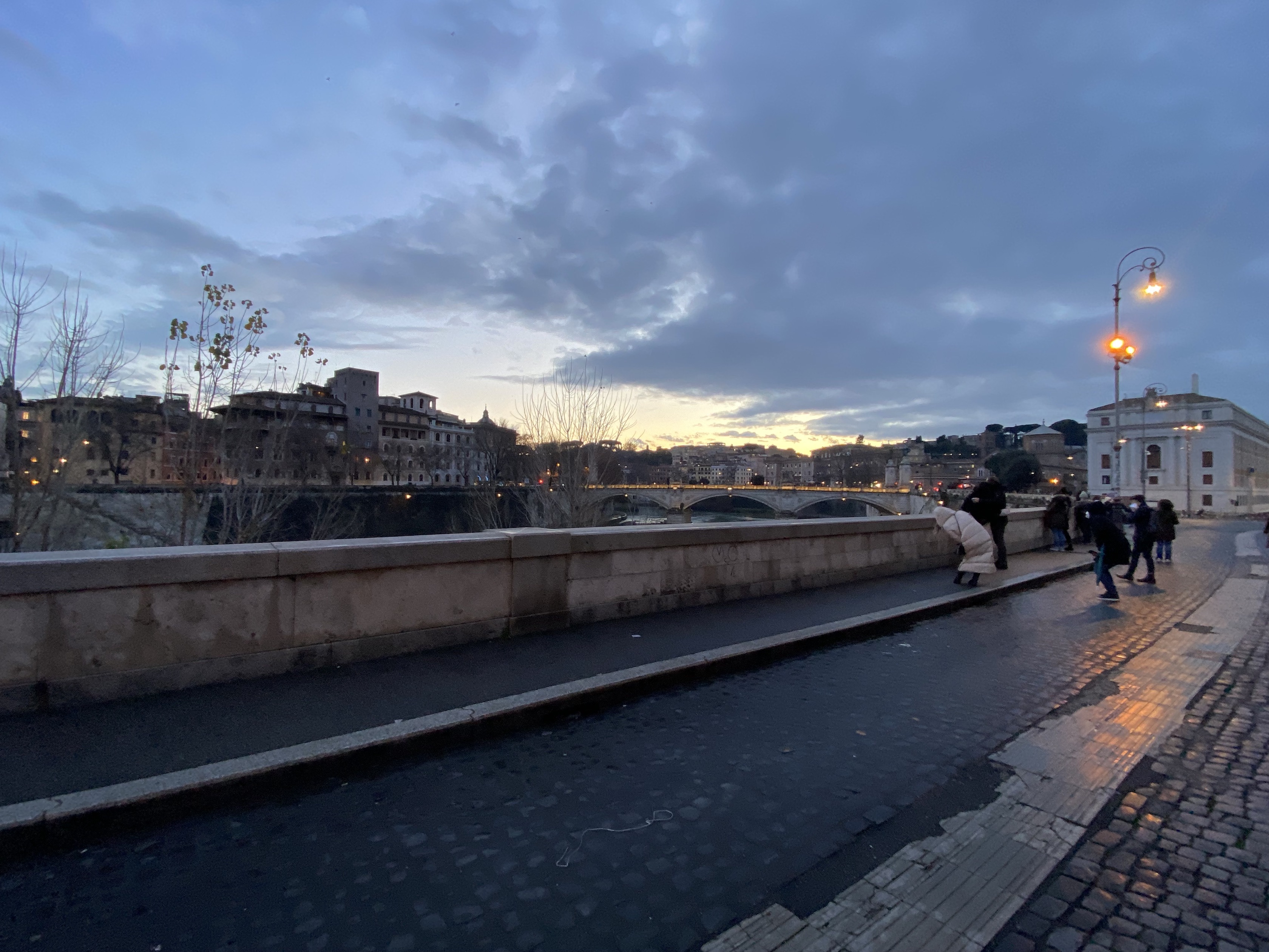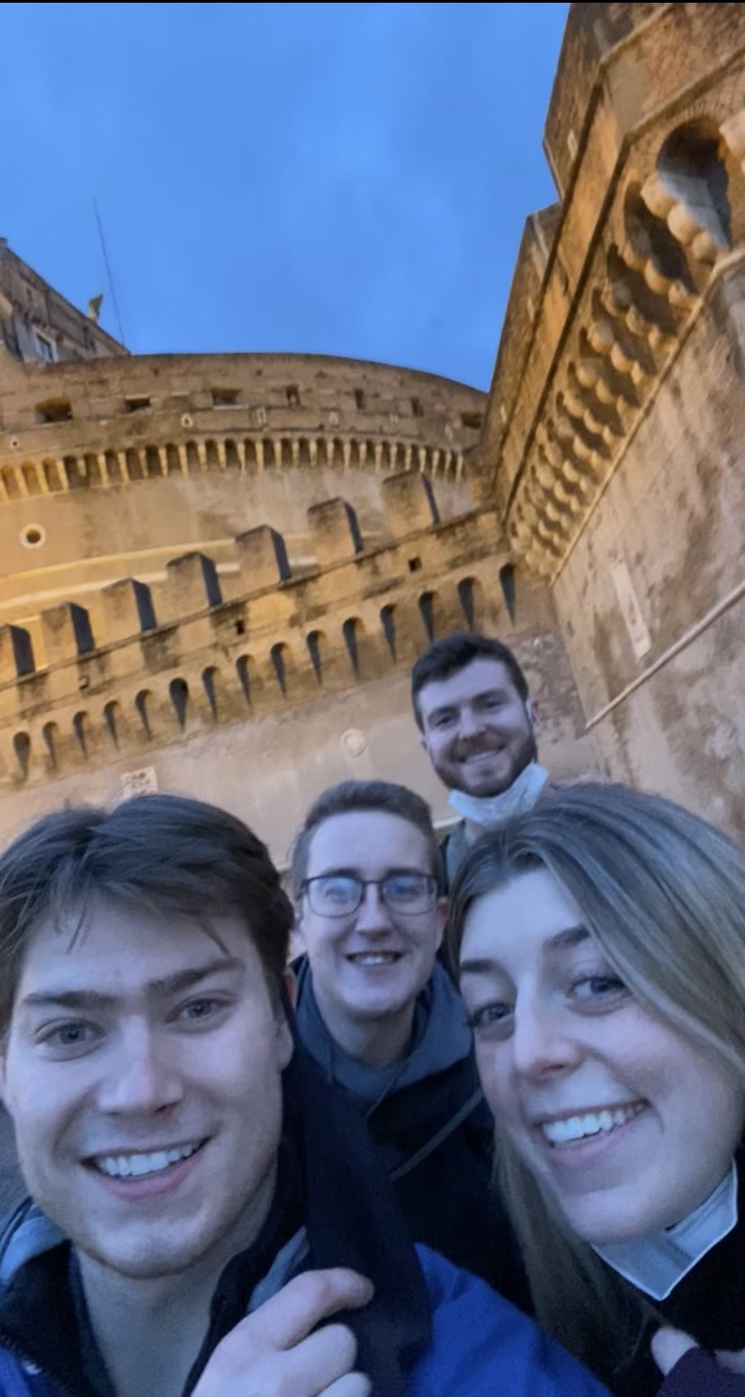 Today Rome finally set in… Upon waking and opening up my balcony window, I was met with pouring rain, a beautiful sight as compared to snow! I rejoined with my group from the previous night and trudged through the rain to the high-end shopping district of Trevi. I did not find any items to purchase, however, I found the best traditional Gelato shop! I was able to sit and have a cappuccino and try the vanilla gelato (Amazing!). While we sat and enjoyed our treats, live music poured up the street, complete with a man singing acoustic Metallica. Continuing with the theme of water, my group and I decided to adventure underground in the Trevi district. We were able to go below the street level down a staircase and check out the hidden aqueducts that fed the city from below. At the site, we saw the original stone foundations of the homes that stood here thousands of years ago. Additionally, the aqueducts that flow to the nearby trevi fountain and their storage reservoirs are found deep below the city at this site. It was fascinating to see how the new and modern city was built right on top of ancient Rome. A complex network of I-Beams and trusses allow the modern high-rise apartment buildings, restaurants, and shops to exist above. Finally, my group and I ventured back to the Castel Sant’Angelo and stood by the Tiber River. We watched the sun engulf the bridges connecting the Tivoli to Prati and the St. Peter’s basilica and its statue-lined driveway while two amazing musicians played on the shore. Overall, today was an excellent day full of culture, learning experiences, and new friendships!