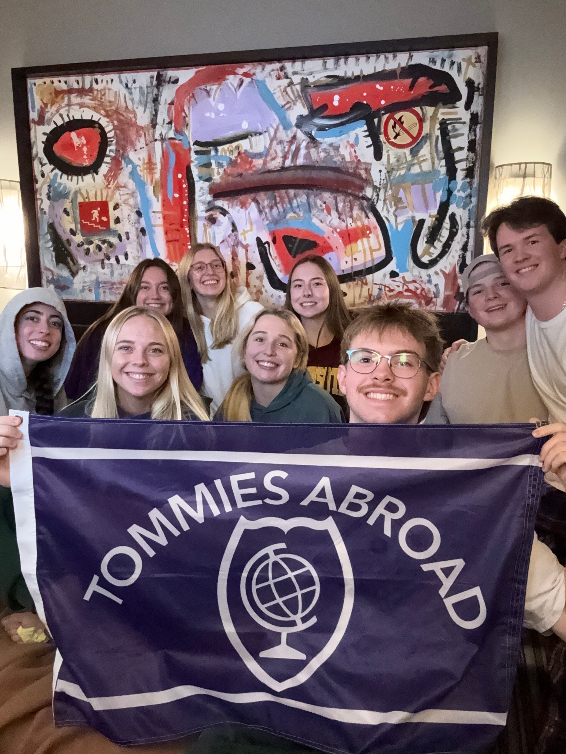 After that point, we broke up into smaller groups, and some of them went to the Colosseum while McKernan and I did a nice stroll back to the hotel and took a photo with the Tommie abroad flag!  And Courtney took a picture by the Colosseum