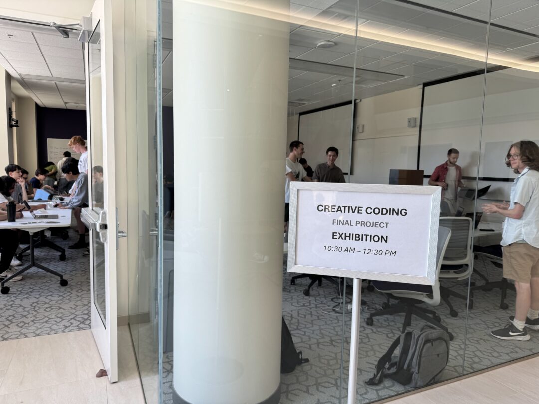 Digital Media Arts and Computer Science students showcased their semester projects from the Creative Coding class, taught by Professor John CS Keston. Their projects included music visualizations, interactive works, projection pieces, and physical computing projects. Visitors engaged with the exhibition through sound, animation, graphics, and interaction.